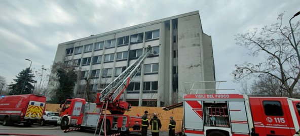 Solo per citare gli ultimi eventi, nell’agosto del 2022 si è sviluppato un vasto incendio (lo stabile come sempre era occupato da persone senza fissa dimora) che ha reso necessario l’intervento di numerose squadre di vigili dl fuoco dalle 23 della sera del 30 agosto fino alle 4 del giorno dopo. L’incendio è stato probabilmente di origine dolosa, visto che le fiamme si sono sviluppate da almeno tre focolai e sono stati messi in salvo tre occupanti che sembra non si fossero resi conto di quanto accadeva. La nube di fumo scaturita dall’incendio era visibile a chilometri di distanza e molti cittadini da varie parti della città hanno segnalato quanto accadeva. Si tenga presente che il complesso degli edifici abbandonato è attorniato da vegetazione incolta e non manutenuta che ha agevolato il diffondersi delle fiamme.