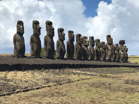 Gli stessi che sono approdati all’Isola di Pasqua dove la luce è diversa, dove lo sciabordio dell’Oceano Pacifico è più violento e assordante e dove, ieratici, con un cappello rosso e gli occhi bianchi contemplano la Terra e chi vi si aggira.