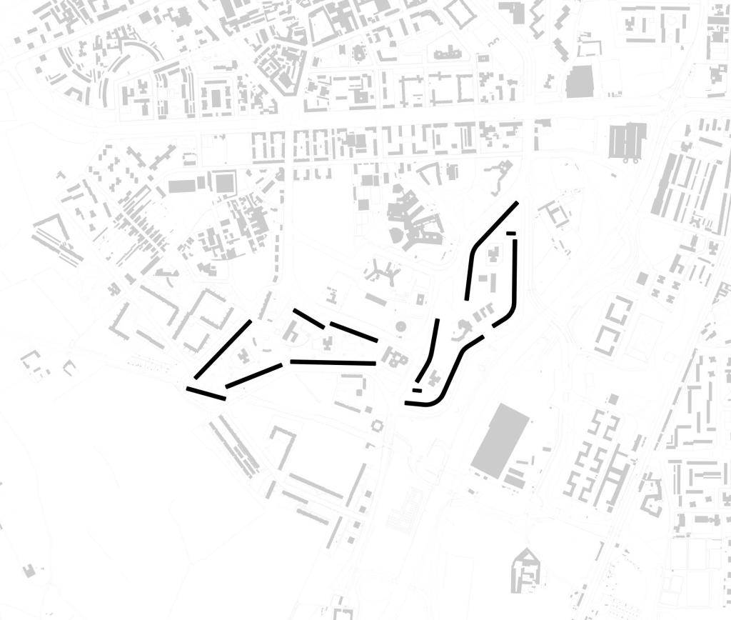Il lotto di intervento, dalla forma allungata, è definito lungo il perimetro da quattro corpi di fabbrica residenziali di otto piani fuori terra, i cui prospetti sono stati differenziati nelle soluzioni compositive tra il lato esterno e quello interno, riflesso anche della distribuzione data agli spazi residenziali interni alle singole unità abitative, sviluppate secondo la tipologia del corpo di fabbrica in linea. Nella parte centrale del lotto, destinato alla mobilità pedonale erano stati progettati e realizzati un centro civico, una chiesa, due scuole materne, una scuola elementare con una adiacente palestra e alcuni negozi. Tali edifici si alternano a spazi gioco e a superfici verdi ricche di piantumazioni. Anche gli edifici per servizi, così come lo spazio pubblico in cui si collocano, si caratterizzano per una elevata qualità progettuale in cui la funzionalità non penalizza le soluzioni formali. A partire dai due semplici corpi rettangolari che ospitano i negozi fino alle forme dirompenti del complesso parrocchiale intitolato a San Giovanni Bono, l’area pubblica all’interno del lotto è certamente uno spazio per molti versi inaspettato − soprattutto per chi ha avuto modo di visitare contesti simili in altri interventi di edilizia pubblica. Uno spazio da scoprire superando l’evidente barriera costituita dalla viabilità e dai parcheggi che circondano il lotto e soprattutto dalle residenze che a distanza non evidenziano la loro permeabilità in diversi punti del piano terra. Ma, quando si superano queste barriere, più percepite che reali, lo scenario cambia rapidamente.