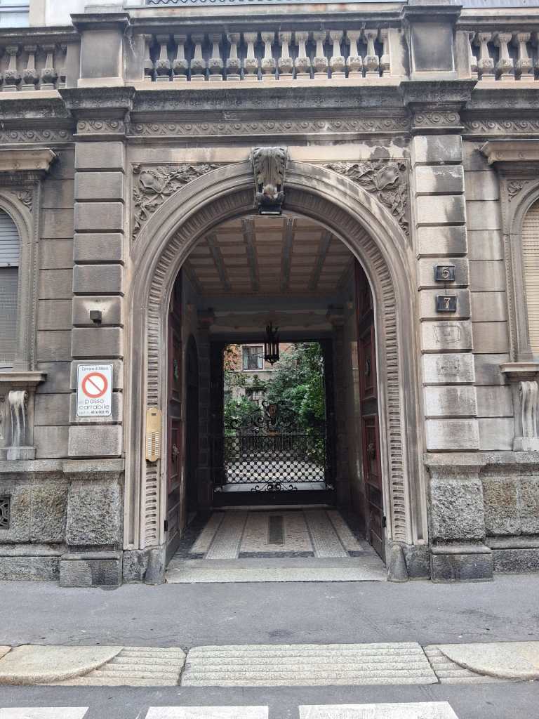 Fin da adolescente, la mia attenzione per Milano è stata catturata non tanto dalle sue piazze o dai suoi monumenti più celebri, quanto dagli ingressi dei suoi palazzi. Non è una bellezza effervescente come quella di Parigi né antica e solenne come quella di Roma: Milano è una città che si svela lentamente, attraverso dettagli nascosti, materiali ricercati, cortili e androni che raccontano la vita dei suoi abitanti e la storia della città. Qui la soglia non è solo passaggio: è esperienza estetica, teatrale e sociale.