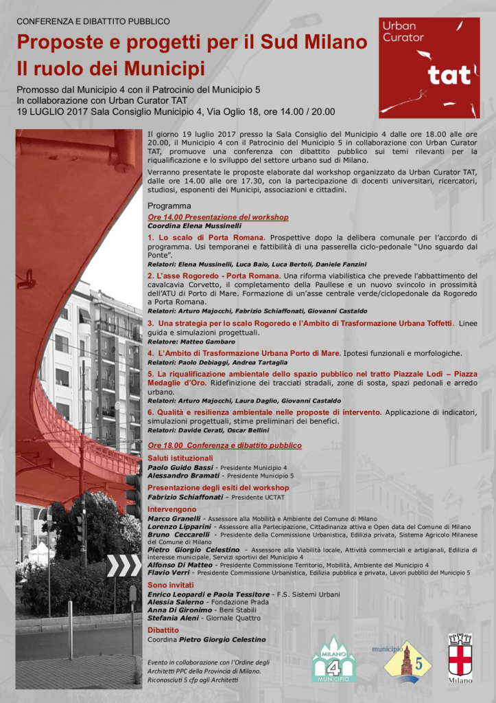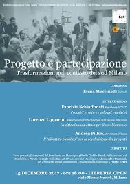 Organizzazione Incontro Pubblico “Progetto e Partecipazione. Trasformazioni nel contesto del sud Milano”, con la partecipazione dell’Assessorato alla Partecipazione, Cittadinanza Attiva e Open data del Comune di Milano, del Municipio 4, del Municipio 5 e di Avventura Urbana (consulente del Ministero delle Infrastrutture nella stesura del decreto attuativo come consulente della Struttura Tecnica di Missione-2017)