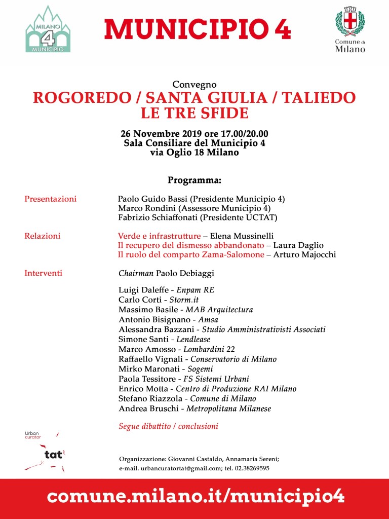 Organizzazione Convegno “Rogoredo/Santa Giulia/Taliedo: Le tre sfide” in collaborazione e con il Patrocinio del Municipio 4