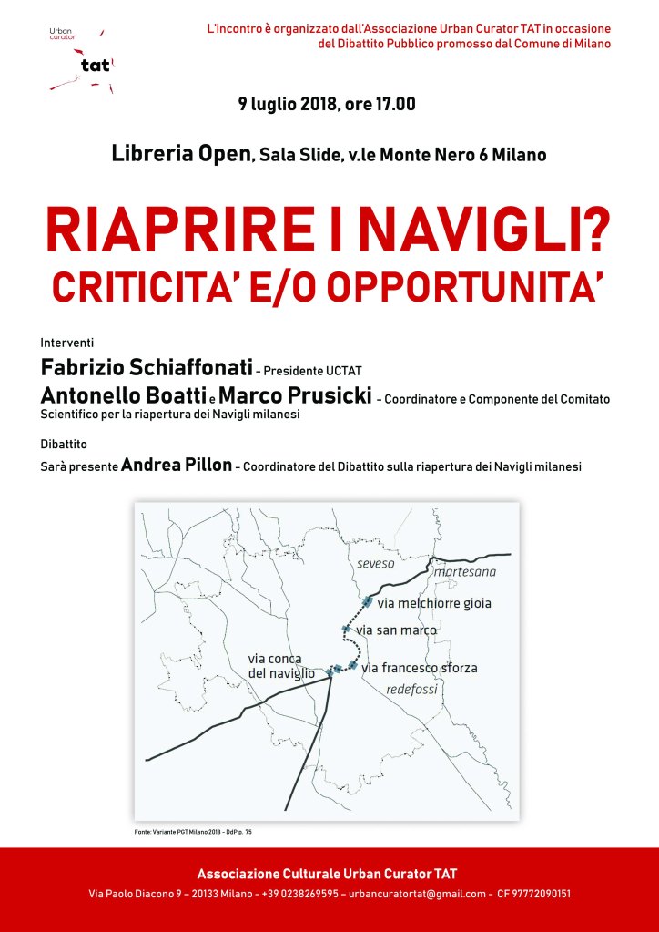 Organizzazione Dibattito Pubblico “Riaprire i Navigli? Criticità e/o opportunità”, incontro organizzato dall’Associazione Urban Curator TAT in occasione del Dibattito Pubblico promosso dal Comune di Milano
