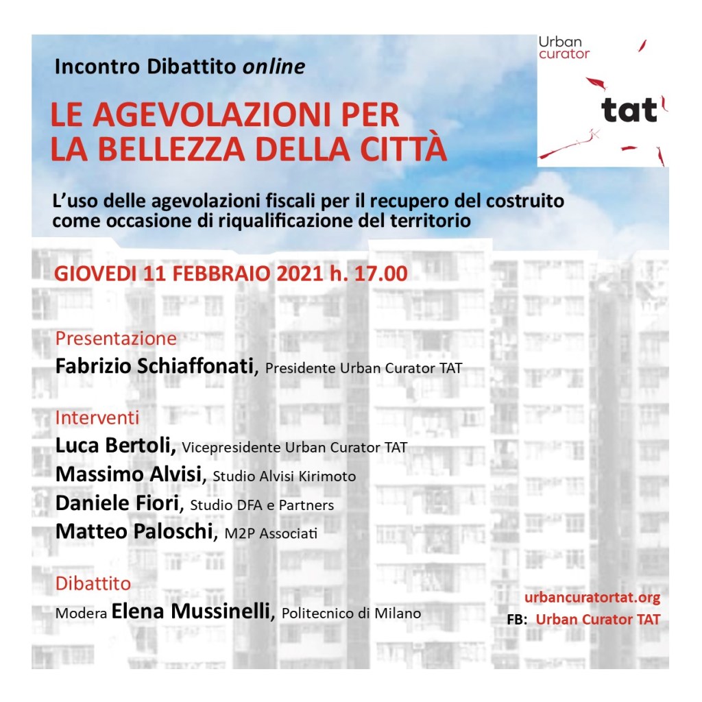 Organizzazione Convegno online “Le agevolazioni per la bellezza della città. L’uso delle agevolazioni fiscali per il recupero del costruito come occasione di riqualificazione del territorio”