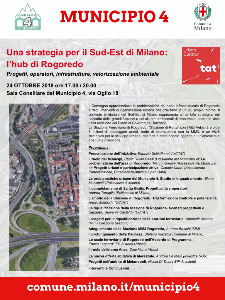 Organizzazione Convegno “Una strategia per il Sud-Est di Milano: l’Hub di Rogoredo” in collaborazione e con il Patrocinio del Municipio 4
