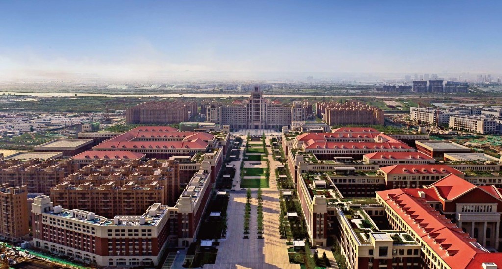 Un campus universitario per oltre 25.000 studenti, di nuova realizzazione, programmato nel 2013, progettato nel 2015 e completato nel 2019, in soli 4 anni. È stato costruito in una zona originariamente rurale a ovest della città di Xi’an, nella Provincia della Shaanxi, nella Cina Centrale. È parte del programma delle amministrazioni locali di sviluppo insediativo di Xi’an verso nord-ovest, con l’insediamento di aziende, centri di ricerca e per l’appunto di un nuovo polo universitario. Si tratta di un grande recinto, di oltre 160 ettari di estensione, con gli edifici per la didattica e la ricerca organizzati lungo una maglia stradale regolare, con al centro l’edificio principale della Xi’an Jiaotong University. Il campus, denominato Innovation Harbour, è dotato di tantissimi servizi: 1 centro sportivo, 1 piscina, 7 mense, 1 biblioteca, 1 museo della scienza, residenze per studenti, docenti e personale amministrativo. Si aggiungono poi 2 stazioni della metropolitana che permettono il collegamento con il centro città (in circa 45 minuti). Xi’an è una città relativamente poco nota al di fuori dalla Cina, se non per essere la località dell’”esercito di terracotta”. In realtà è una importante città cinese, una delle capitali storiche dell’impero, oggi metropoli di oltre 8,5 milioni di abitanti, in crescita demografica e forte sviluppo socioeconomico.