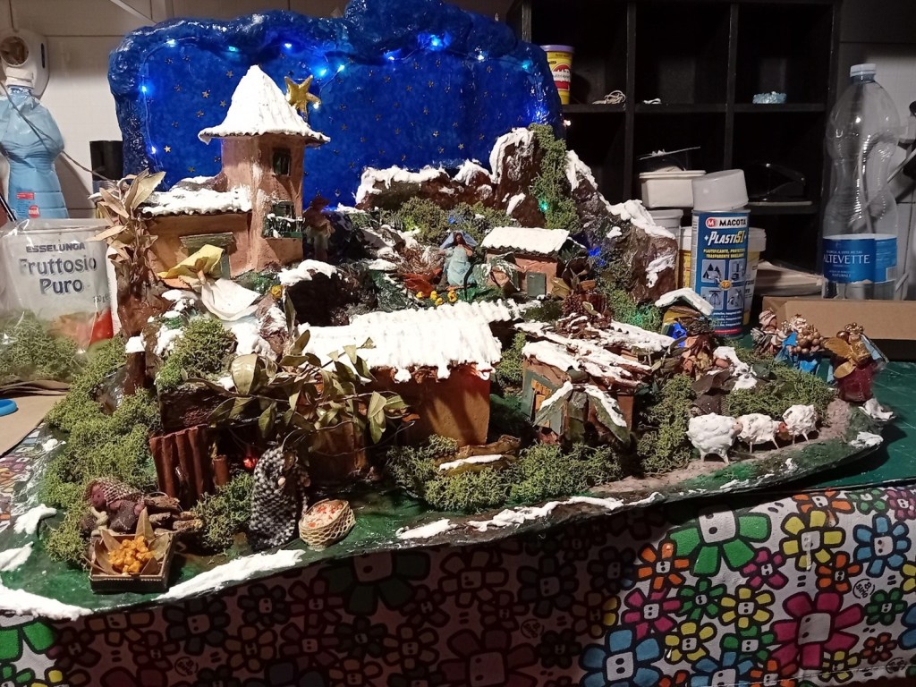 Un anno ci siamo cimentate anche nella realizzazione di un presepe, con il cielo stellato, le montagne, la stalla col bue e il vitello, qualche casetta e tutti i personaggi, Re Magi inclusi.