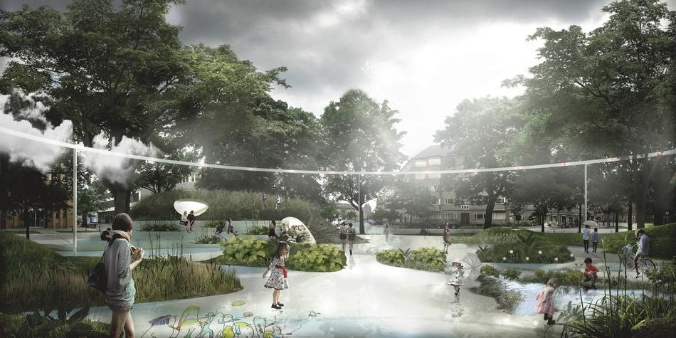 Altro progetto esemplare è quello del quartiere di San Kjelda Copenaghen, dove dopo la bomba d’acqua che lo mise in ginocchio il 2 luglio del 2011 (1 miliardo e 400 milioni di danni), la capitale danese, da sempre in prima linea sui temi dello sviluppo sostenibile, cominciò per la prima volta a fare i conti con alluvioni e isole di calore, con il varo, nel 2012, del piano di adattamento al clima (“Copenaghen Climate Plan”).