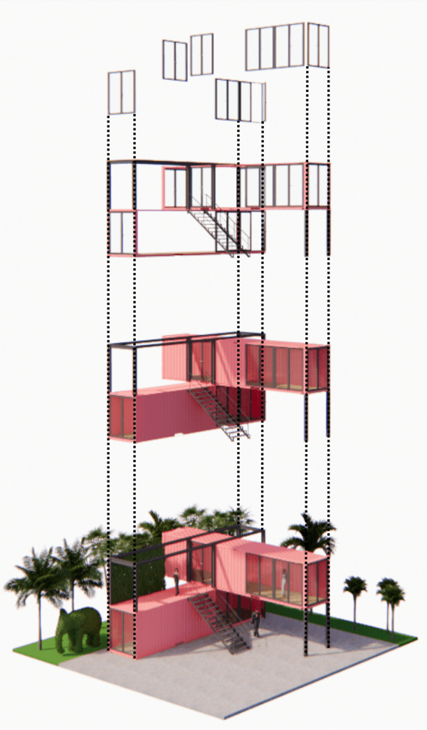 In questo quadro, l’esperienza realizzata nell’ambito dei laboratori di Technological Design Studio e dell’Atelier of Interaction Design del corso di studio in Design for the Built Environment (DBE) dell’Università di Napoli Federico II, propone il progetto di un hub urbano per proporre nuovi spazi per l’economia circolare a scala urbana. In termini normativi, l’hub riferisce ad una specifica tipologia di attrezzatura per il riutilizzo di arredi in legno, oppure tessuti, volta a favorire il riuso, la riparazione e il re-design di stock di prodotti scartati prima che possano considerarsi rifiuti (Legge regionale 26 maggio 2016, n. 14). Ribattezzato “CIRO”, l’hub è una attrezzatura non specialistica per l’estensione del valore e il ciclo di vita di prodotti scarto realizzata attraverso la combinazione di container marittimi dismessi, riadattati e rifunzionalizzati secondo processi combinatori, esemplificativi di specifici set di requisiti emergenti dell’abitare. L’hub è pensato come spazio atopico, adattabile alle diversità dei contesti possibili in ambito urbano per estensione di superfice e per geometria dello spazio; è pensato con tecnologie low-cost e low-tech e deve potere essere facilmente montato e poi, eventualmente, smontato e rimontato in altro luogo secondo diversi layout funzionali. L’hub deve essere energeticamente autosufficiente e deve essere integrabile con moduli aggiuntivi per il tempo libero o usi espositivi.