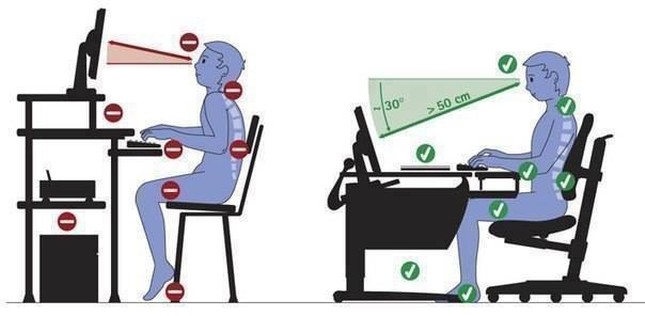 - Posizionare lo schermo bene davanti al nostro sguardo, ad un’altezza che permetta di guardare leggermente in basso (linea tra sguardo e punto centrale dello schermo dovrebbe firmare un angolo di 30 gradi rispetto all’orizzontale).