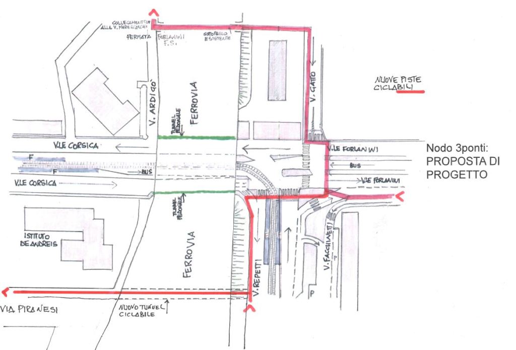 TUNNEL PEDONALI: Per attenuare il disagio di coloro che intendono attraversare pedonalmente il sottopasso Forlanini/Corsica, in entrambi i sensi, è opportuno pensare un progetto che ribalti le attuali difficoltà e generi un approccio positivo al tunnel. I principali fattori critici sono la ristrettezza dei marciapiedi, la scarsa luminosità, l’inquinamento, il rumore, la sicurezza.
