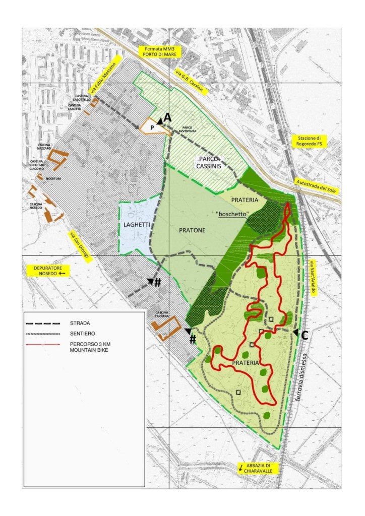 Circa due terzi dell’area – dalla Via Sant’Arialdo lungo la Via San Dionigi – sono vincolati a Parco di cintura (Regione), invece nel restante terzo considerato edificabile – per una superficie di ca 365.000 mq – ricompresa tra la Via Fabio Massimo, la via San Dionigi e la Via Cassinis – sono presenti diversi antichi cascinali, vaste aree tuttora a verde, centri sportivi (tennis, calcetto, equitazione) ed i capanni senza fondamenta di alcune piccole attività artigianali.