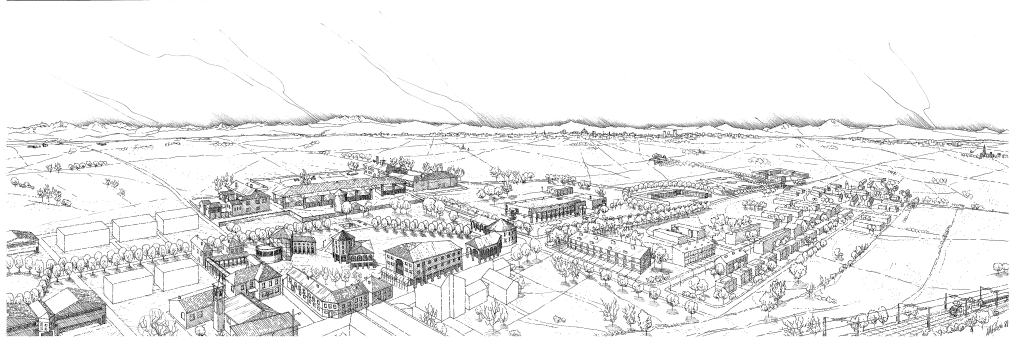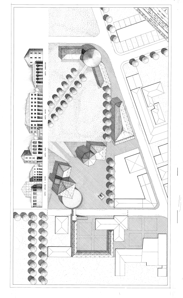 Bosio al corrente di quanto fatto da me con Calamida e Lucchini a Poasco, avendo predisposto nello stesso periodo il planivolumetrico di un lotto della 167 all’ingresso del paese, mi stimolò a metter mano ad un complessivo progetto ambientale nello spirito della legge Galasso che promuoveva i Piani Paesistici. Un “Piano-Progetto” esteso a tutto l’abitato, col recupero della grande cascina e la realizzazione di nuovi servizi, in una visione coordinata che allora si auspicava per superare l’approccio solo normativo dell’urbanistica. Come nel pensiero di Pierluigi Cervellati, ma anche di Paolo Portoghesi, in una sperimentazione proposta a Bologna.