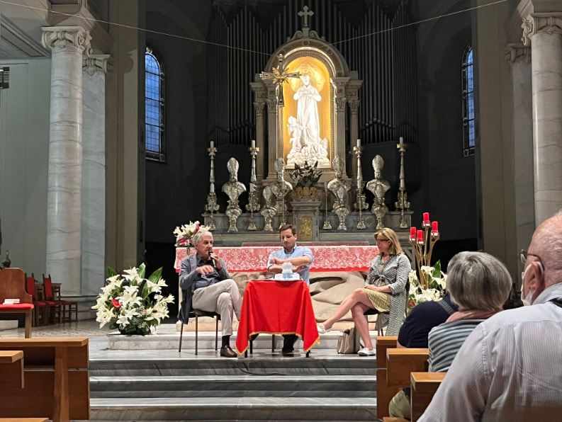 Un luogo inconsueto per una conferenza di urbanistica che ha reso ancora più emozionante la serata: il grande spazio ecclesiale, tre sedute di fronte all’altare, il riverbero delle voci, la penombra hanno accentuato il contrasto tra la sacralità del luogo e lo spirito partecipativo e laico dell’incontro pubblico.