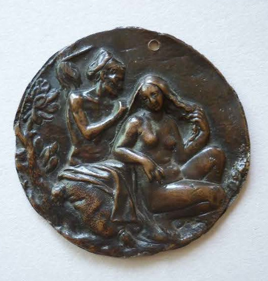 Placchetta raffigurante la bellezza e il decadimento di una “vanitas” (diam. 89 mm) in bronzo fuso a cera persa; area fiamminga, XVI secolo.
