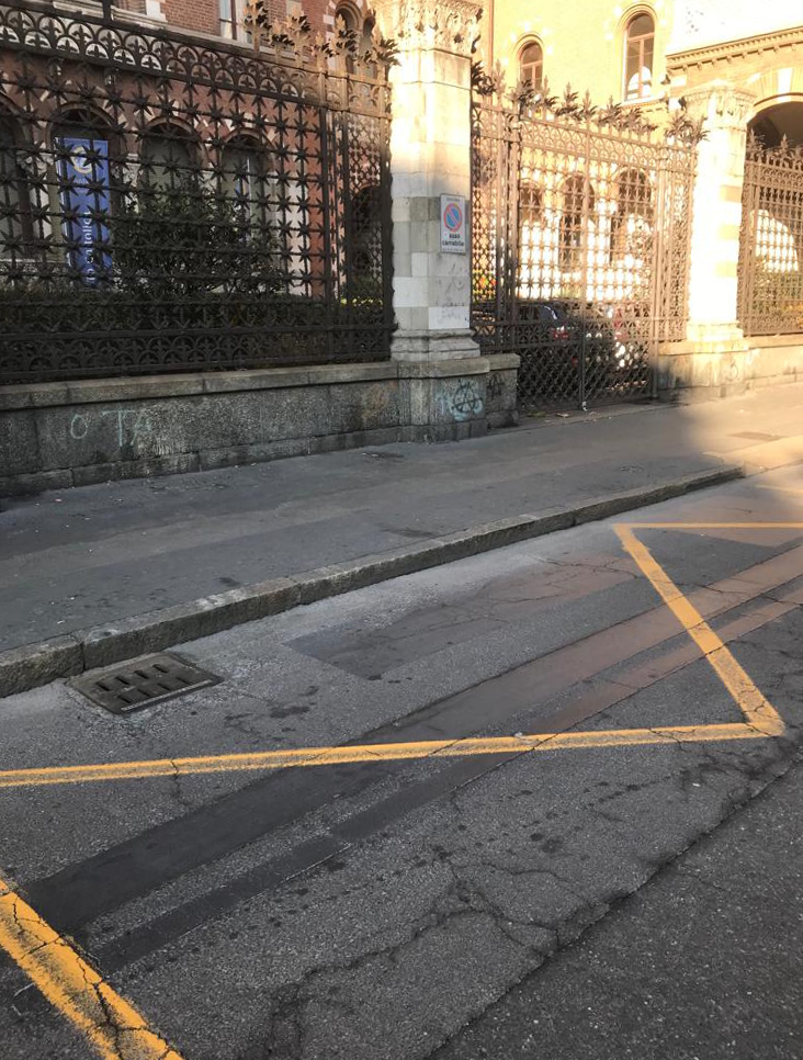 Non parliamo delle segnaletiche per il traffico verniciate sull’asfalto sempre più vistose; assieme alla suddetta foresta, esse sono tali da negarci l’oggettiva suggestione di molti affascinanti scenari architettonici o anche semplicemente edilizi: ritengo che (analogamente al discorso sulla improbabile opportunitá di applicare un “cappotto” alla moltitudine di edifici storici che costituiscono un patrimonio estetico irrinunciabile per il nostro Paese) le normative internazionali riguardanti la regolamentazione del traffico dovrebbero essere meno invasive e incongruenti con il nostro specifico e peculiare contesto esistente (foto 4 e 5).