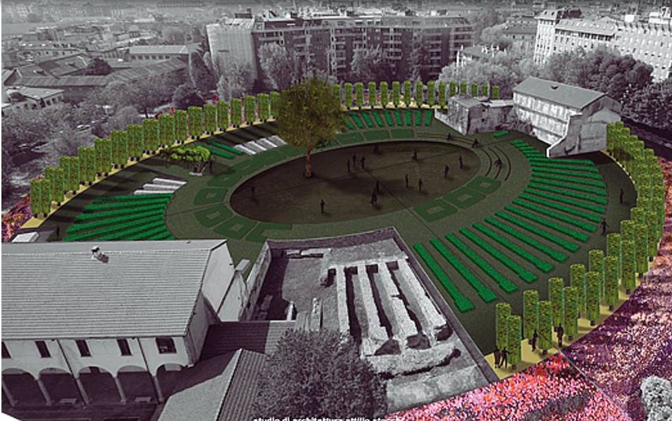 L’anfiteatro ricostruito rivivrà in modo green in un’area triangolare di 10.000 mq, tra le vie Arena, De Amicis, Olocati (ora Conca del Naviglio). Attualmente si possono notare 14 muri radiali, di 17 metri di lunghezza, sistemati a corona a sostegno delle gradinate superiori. Le distruzioni della guerra hanno cancellato molte tracce artistiche rimaste nell’antichissima contrada.